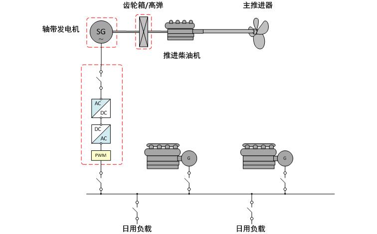 • 軸帶電機和推進主機通過機械方式連接; • 支持PTO/PTI/PTH 運行模式; • 能耗表現更佳,降低了運營和維護成本; • 初期投資低,投資回報率高。